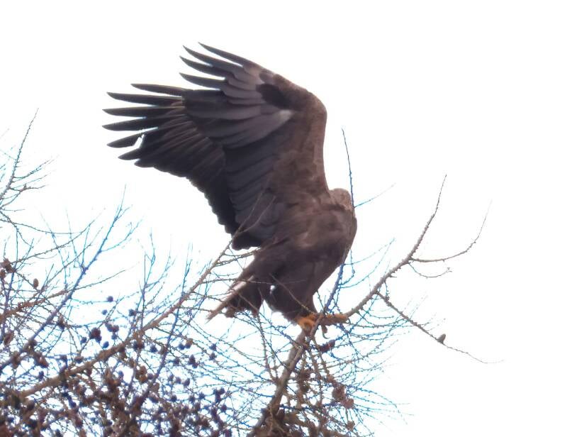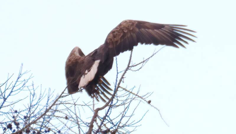 Gut geschützt hat das Seeadlerweibchen mit der Brut begonnen.