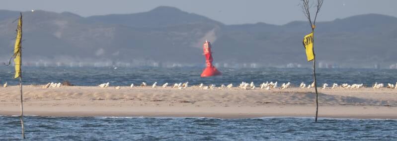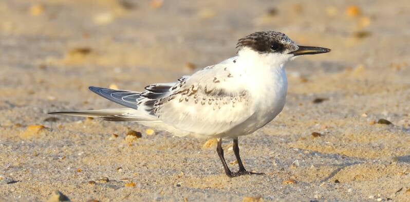 Zwei junge Brandseeschwalben mit einem Alttier.