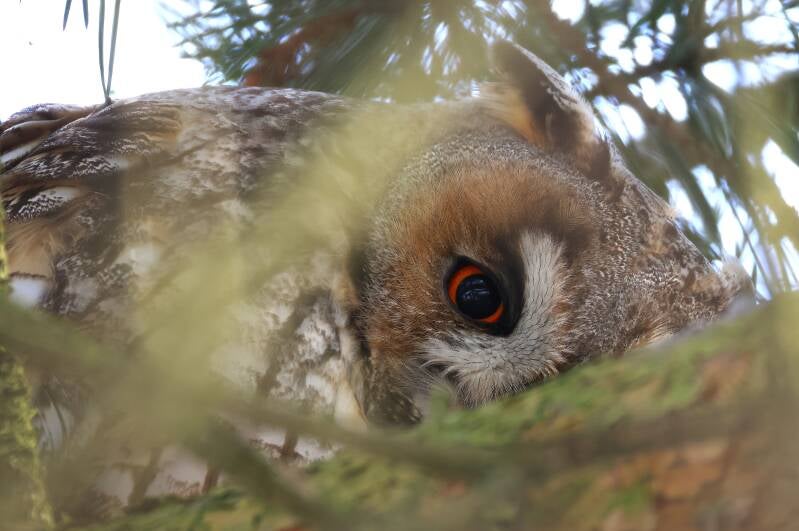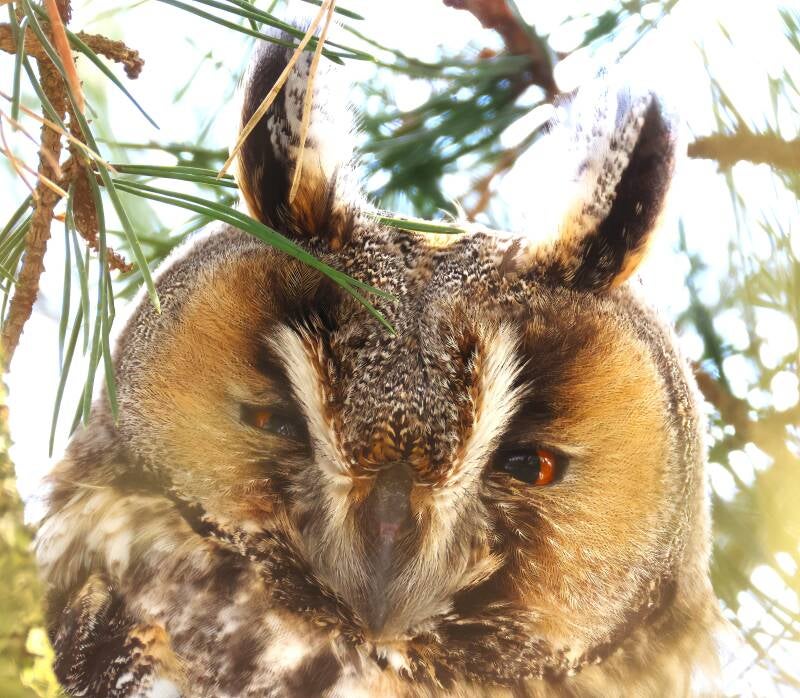 Die Waldohreule bei der Körperpflege.
