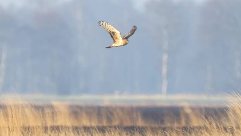 Das Kornweihen-Männchen beim Jagen.