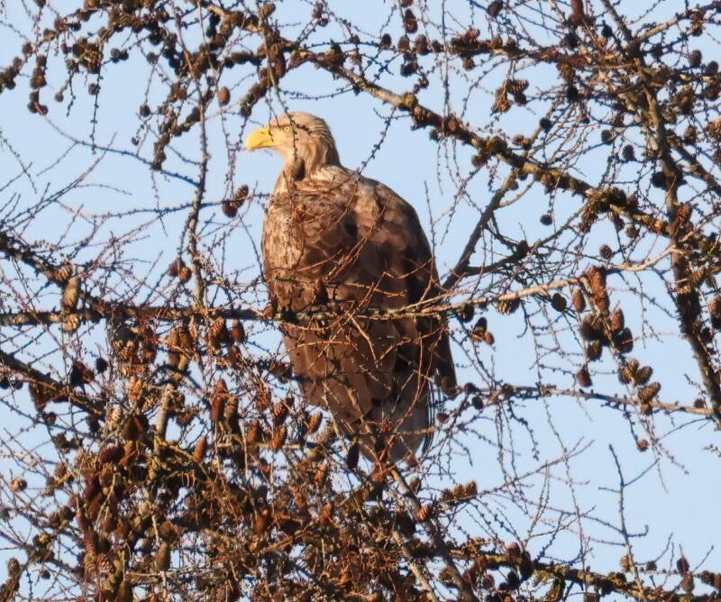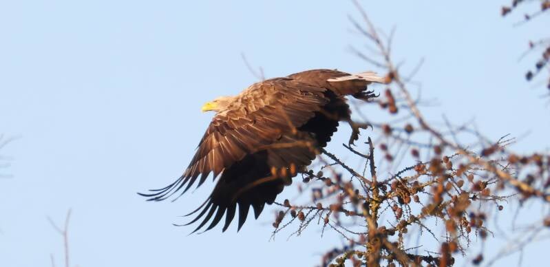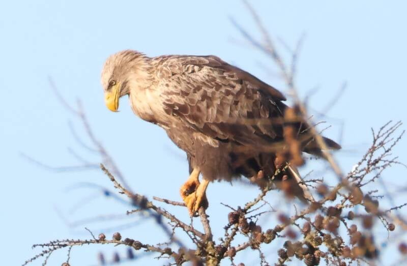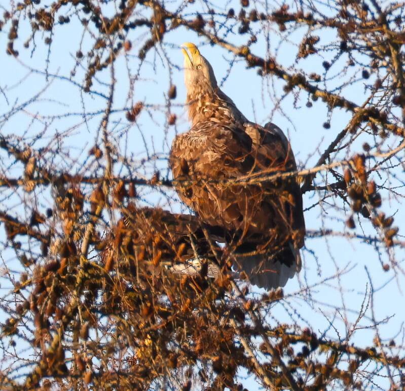 Das große Habichtweibchen ist auch in Balzstimmung.