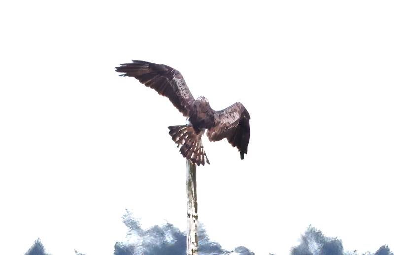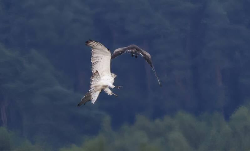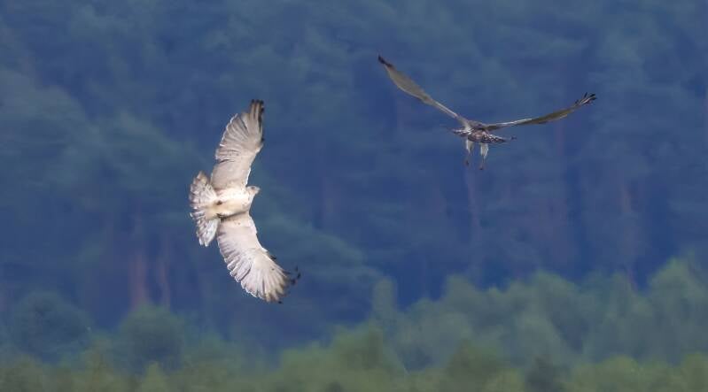 Der Jüngere fliegt auf seinen Ansitz.