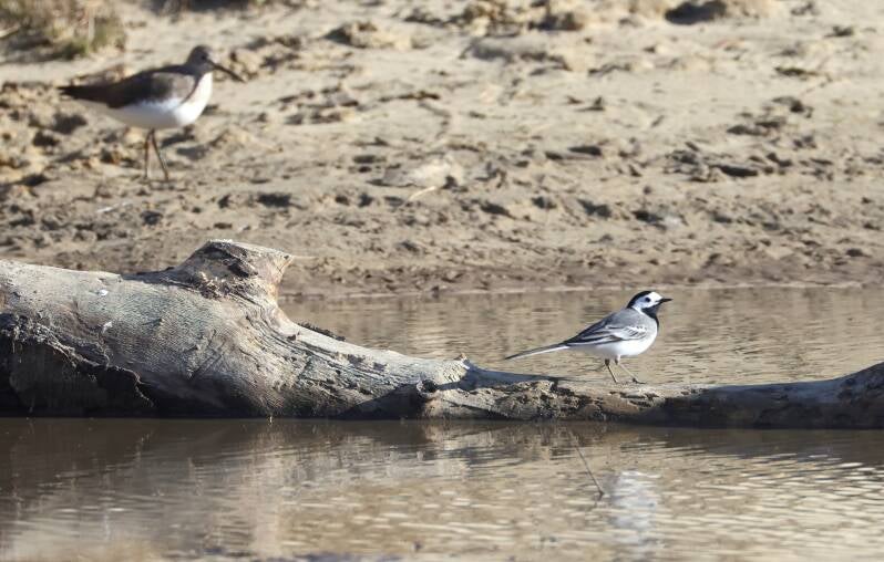 Der Waldwasserläufer und sein Bachstelzenfreund.