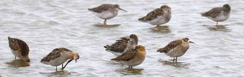 Dunkler Wasserläufer und Säbelschnäbler.