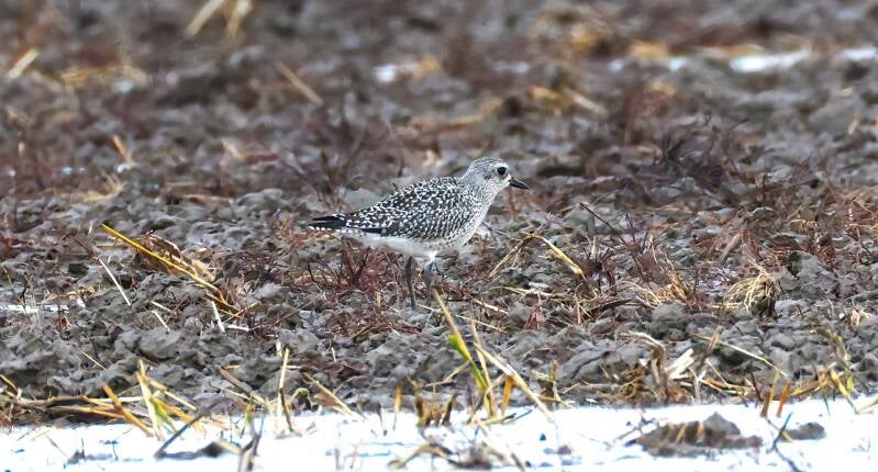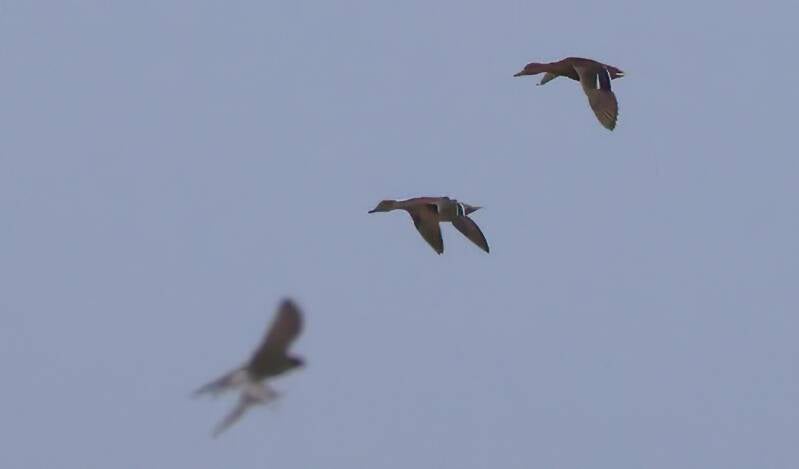 Am Bildrand sieht man noch den Kiebitzregenpfeifer lautstark fliehen.
