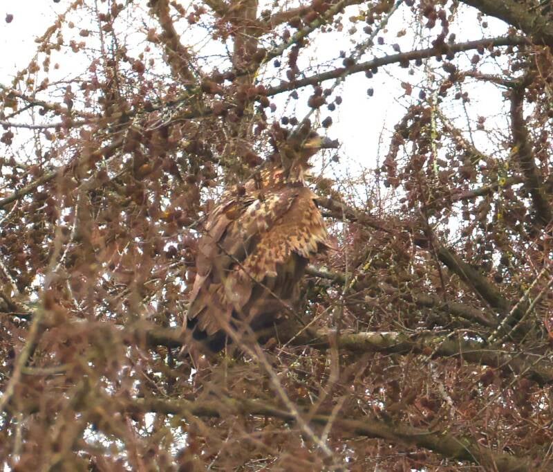 gut getarnt der junge Seeadler.