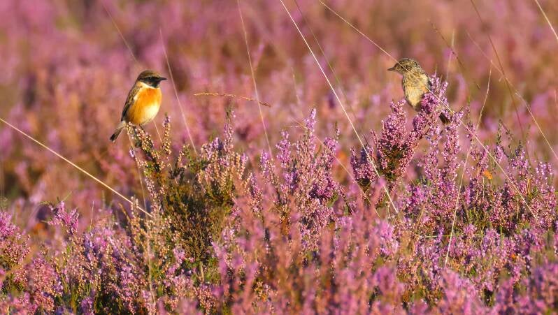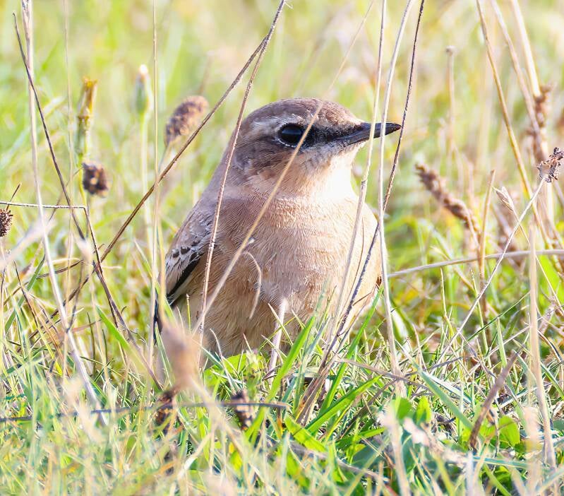 Der Steinschmätzer versteckt sich im hohen Gras.