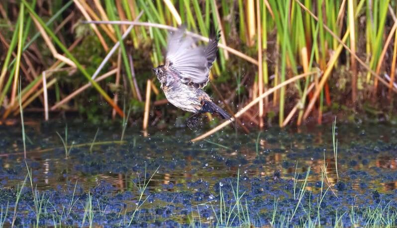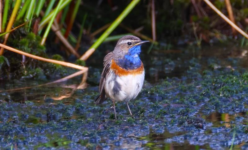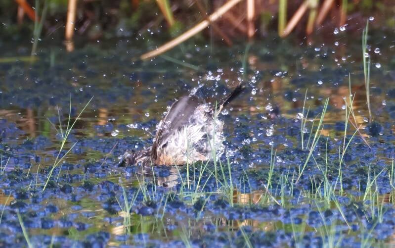 Die jungen Blaukehlchen genießen das kühle Nass.