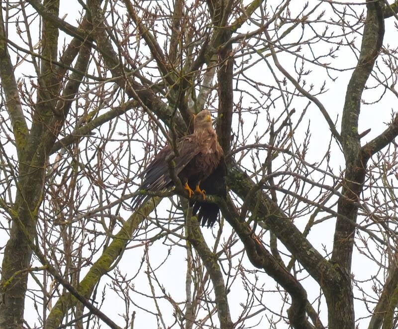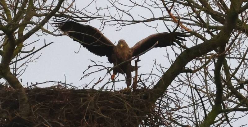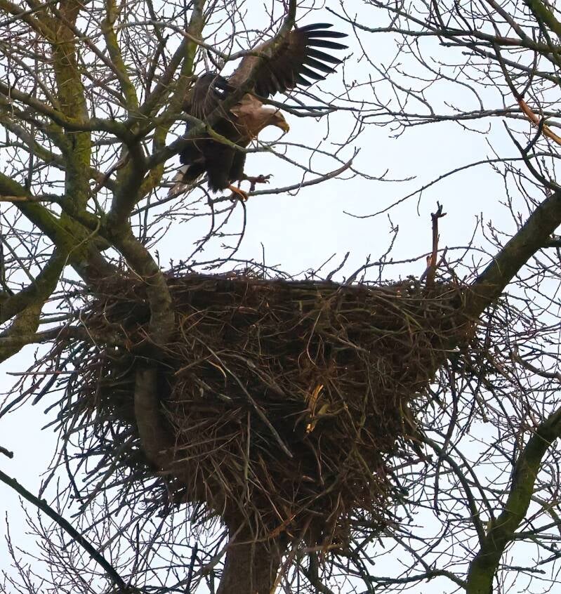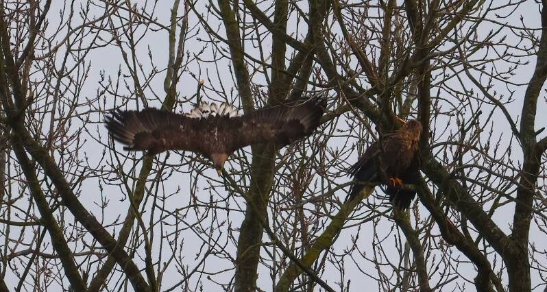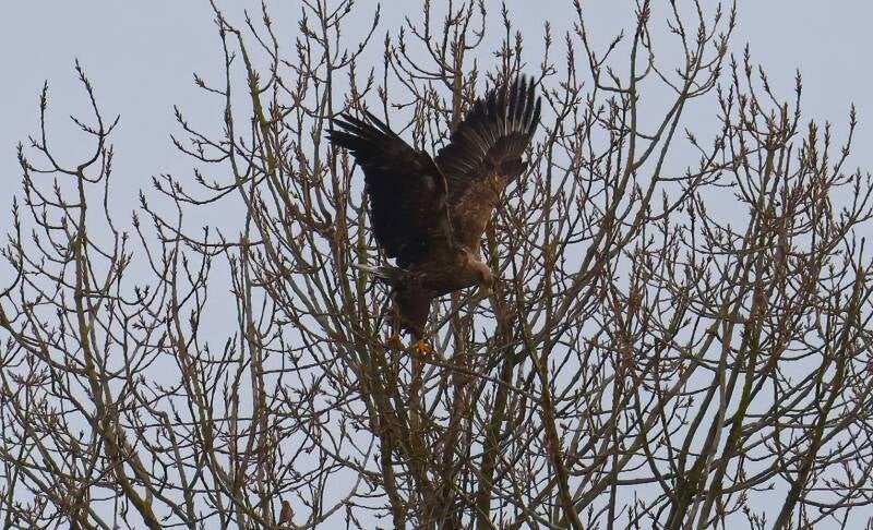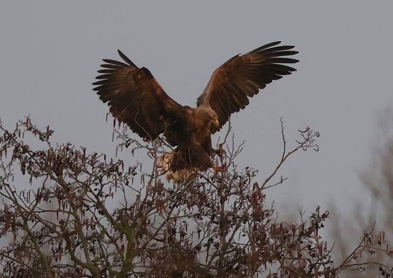Der junge Seeadler landet über ihr...