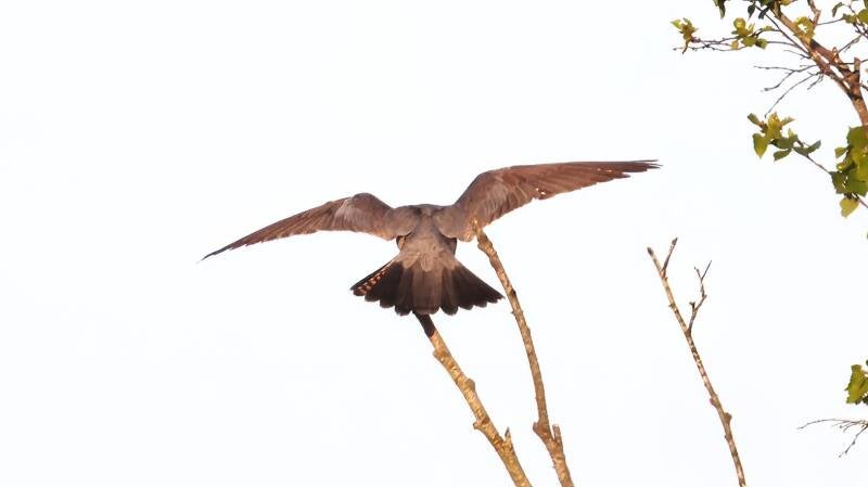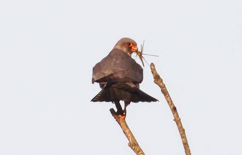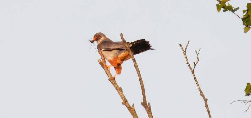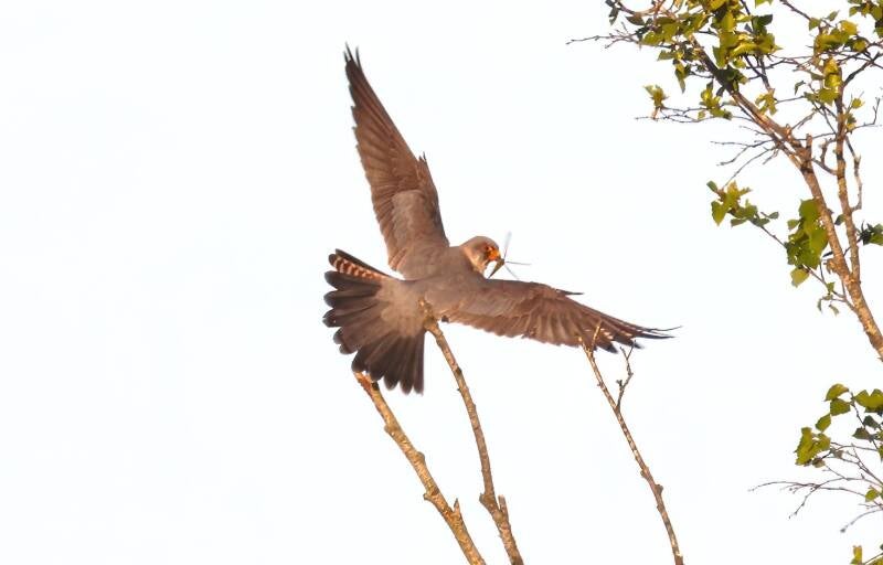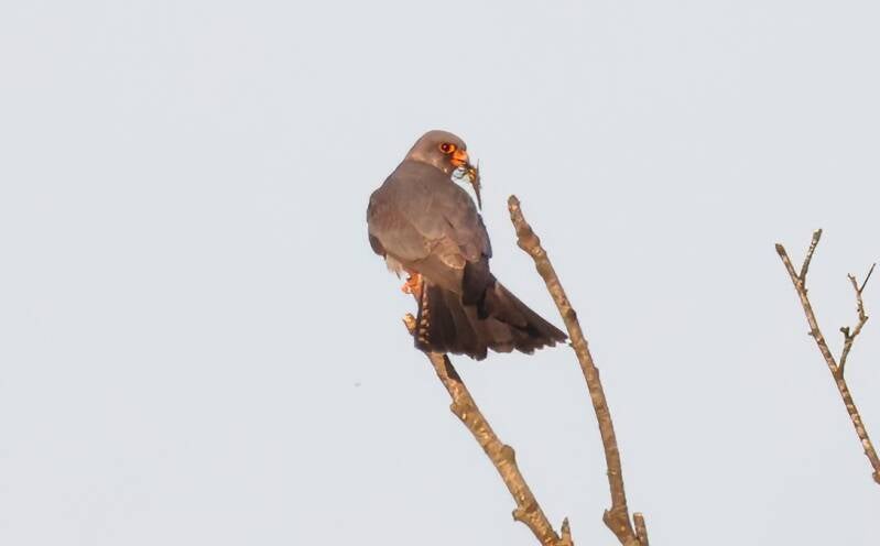 Abends in der Dämmerung besucht mich noch ein seltener Rotfußfalke.