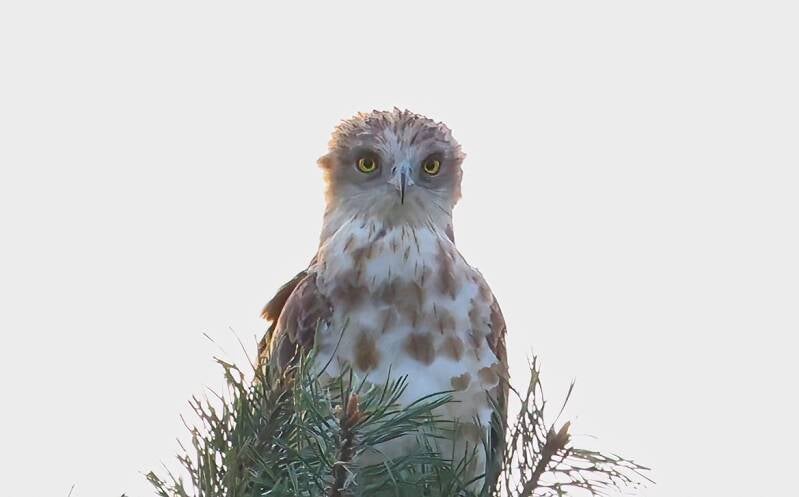 Einer der beiden Schlangenadler im Gegenlicht.