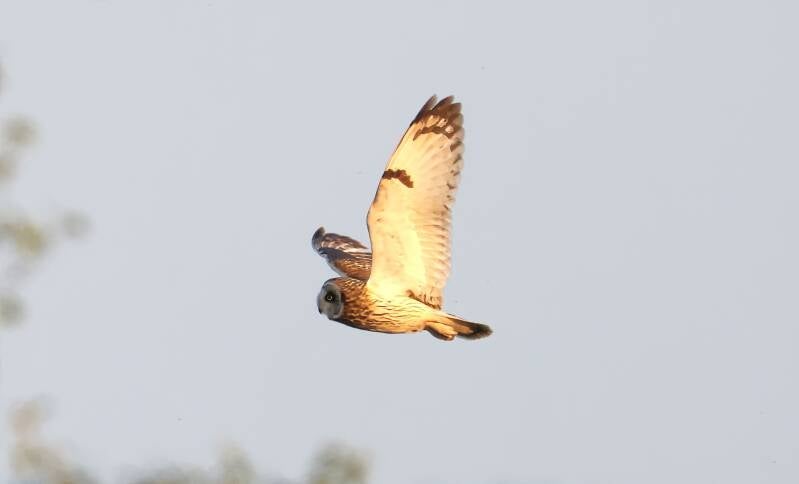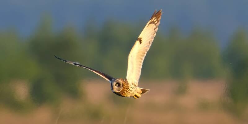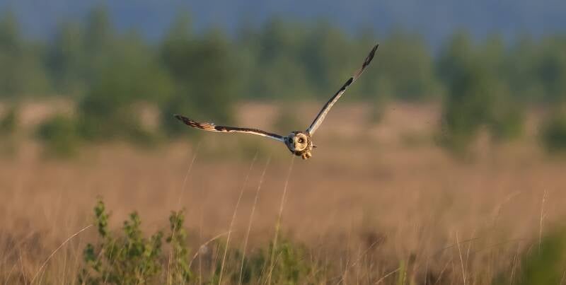 Die Sumpfohreule jagt nach Mäusen.