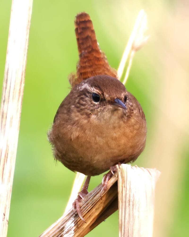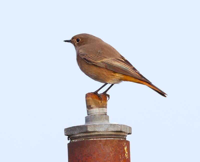Ein Rotschwanz auf dem alten Wasserfass im Moor.