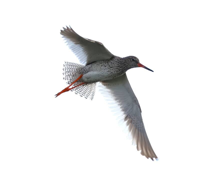 Ein Pulk Grünschenkel schießt vorbei.