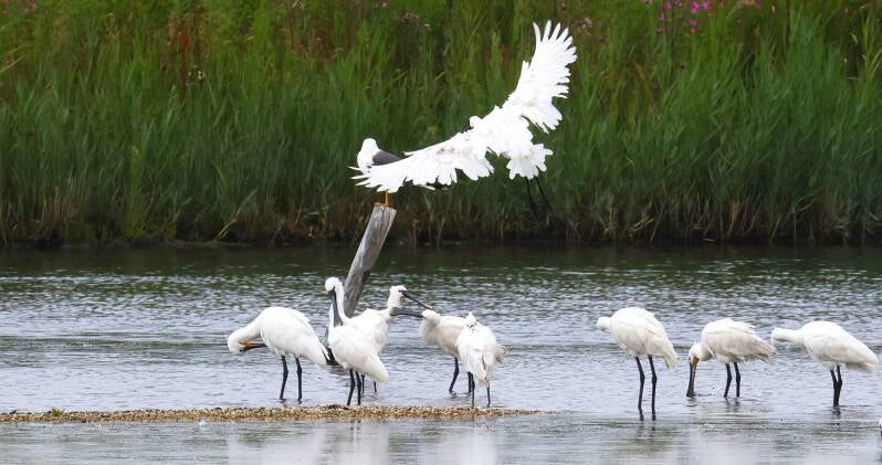 Die Heringsmöwe überwacht die Löffler.