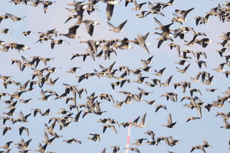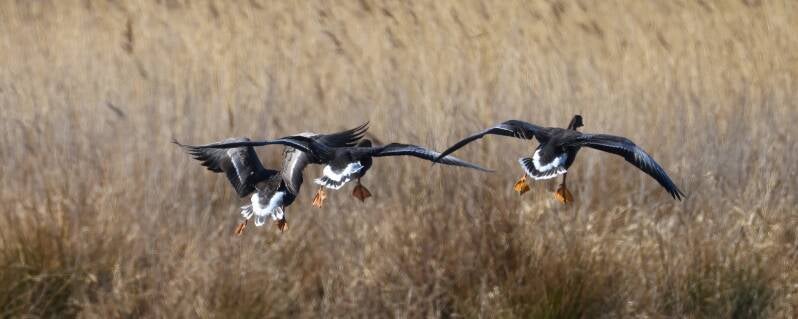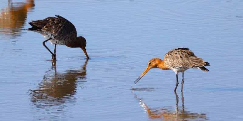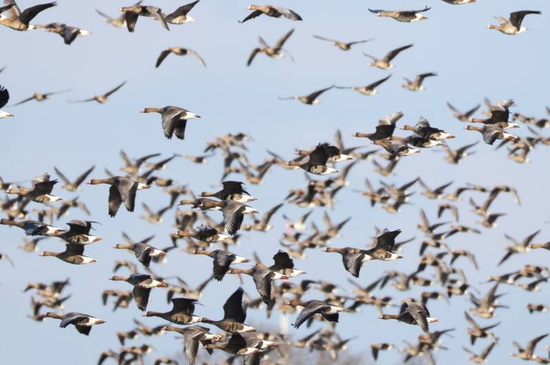 Zusammen mit Uferschnepfen und Graugänsen wird ausgiebig gegrast.