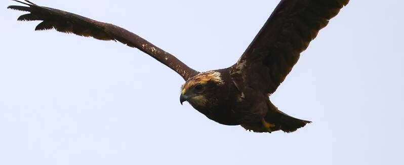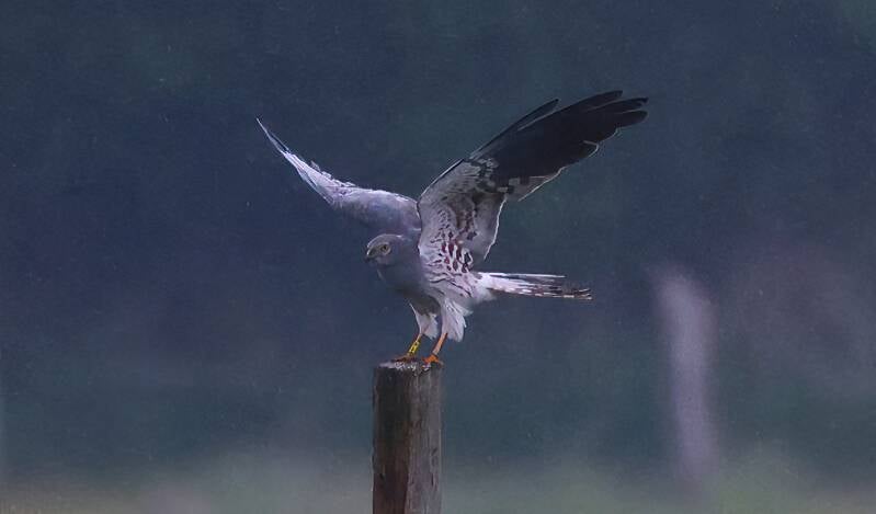 Die beringte Wiesenweihe im Halbdunkeln. (Beleg)