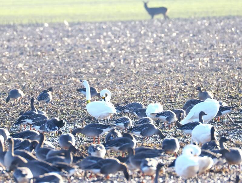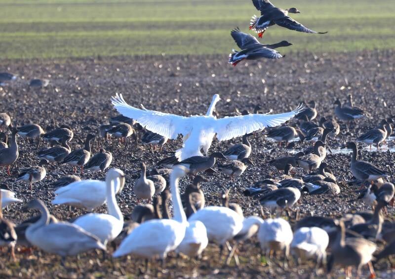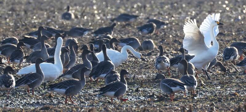 Die Zwergschwäne landen direkt bei Alois Hiemann vor der Haustür.