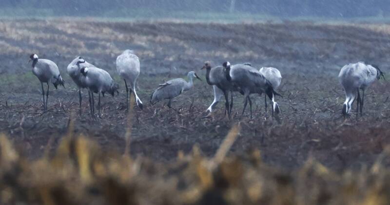 Meistens war die Kranichgruppe im Regen unterwegs.