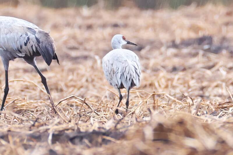 Hier im Schneeregen.. Er wird von der Kranichkolonie mehr und mehr akzeptiert.