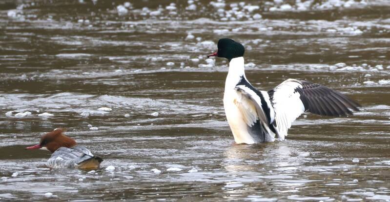 Sie schaut den Gänsesägern beim Fischen zu.